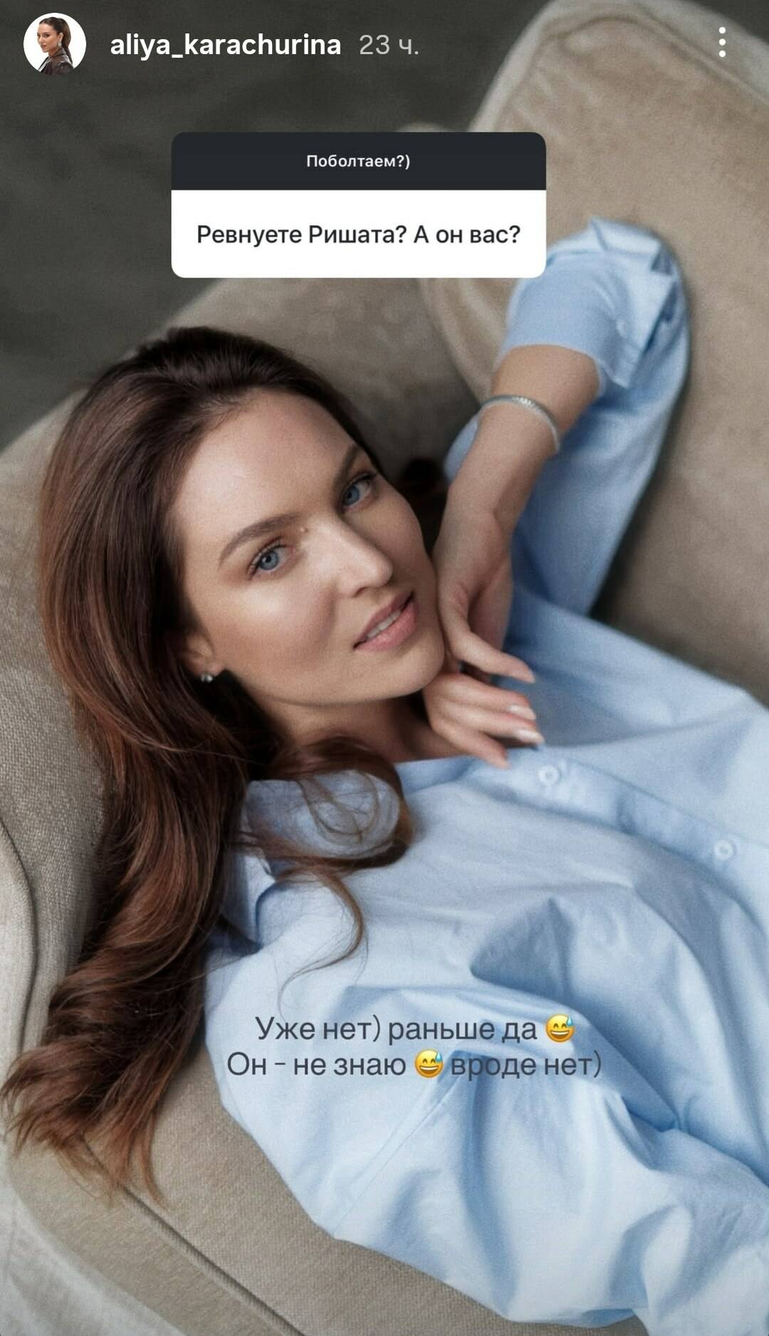 Ә Ришатны көнлисезме, дип сорауга: «Хәзер инде юк... элек көнли идем. Ә менә ул мине көнлиме икәнен белмим, юк шикелле», – дип әйткән.