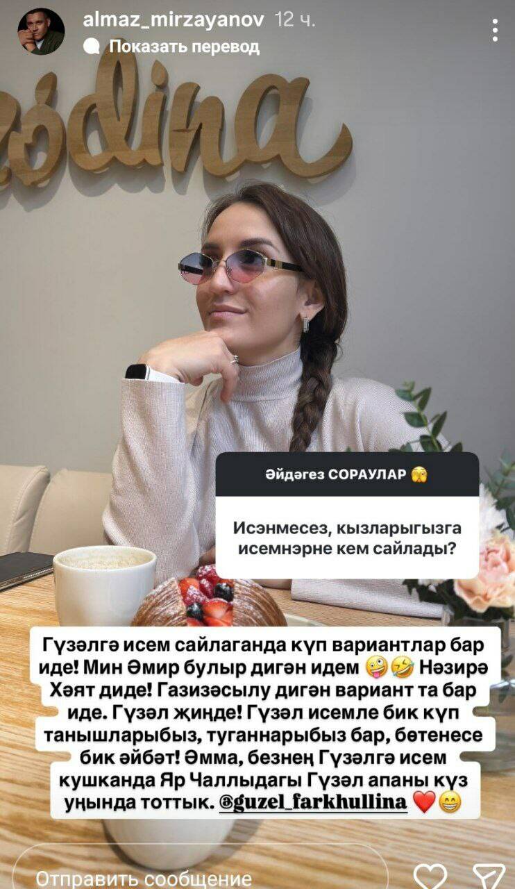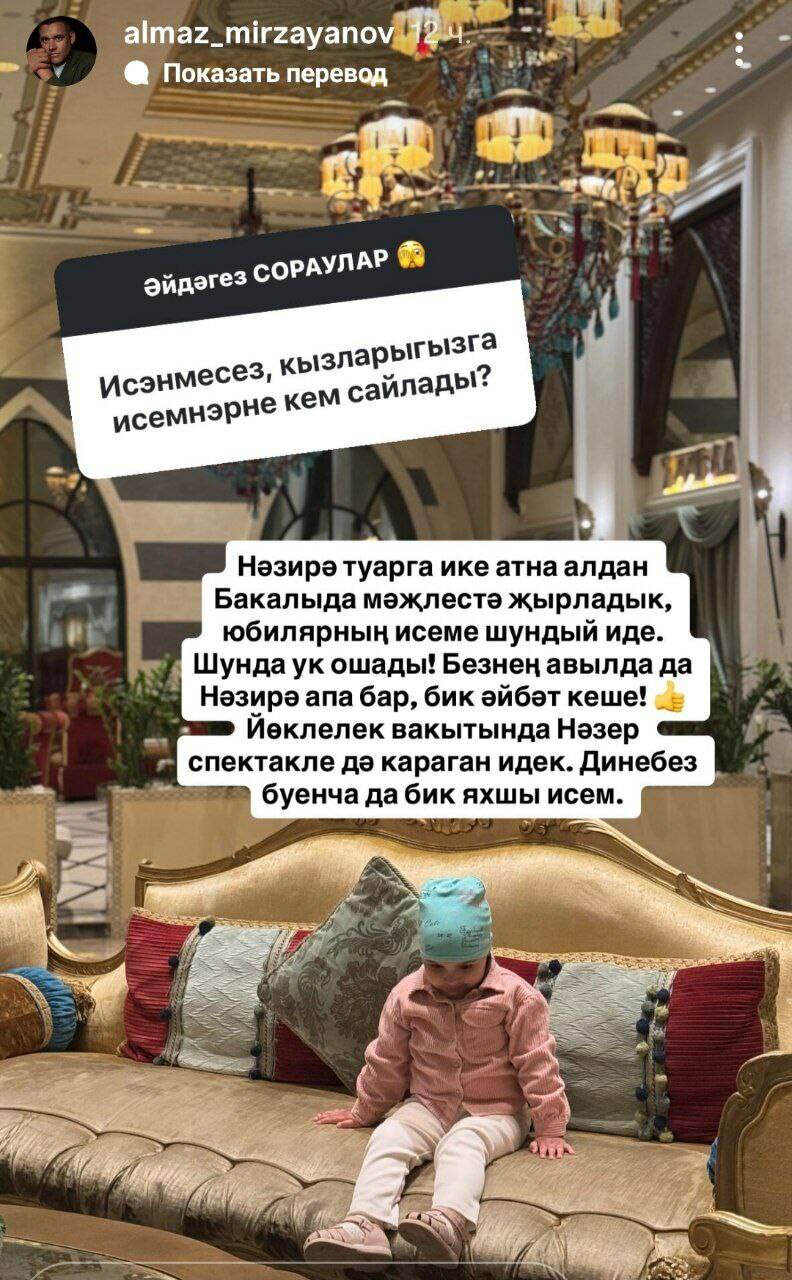 Алмаз Мирзаянов кызларына исем сайлау турында: «Туарга ике атна кала бер хәл булды...»
