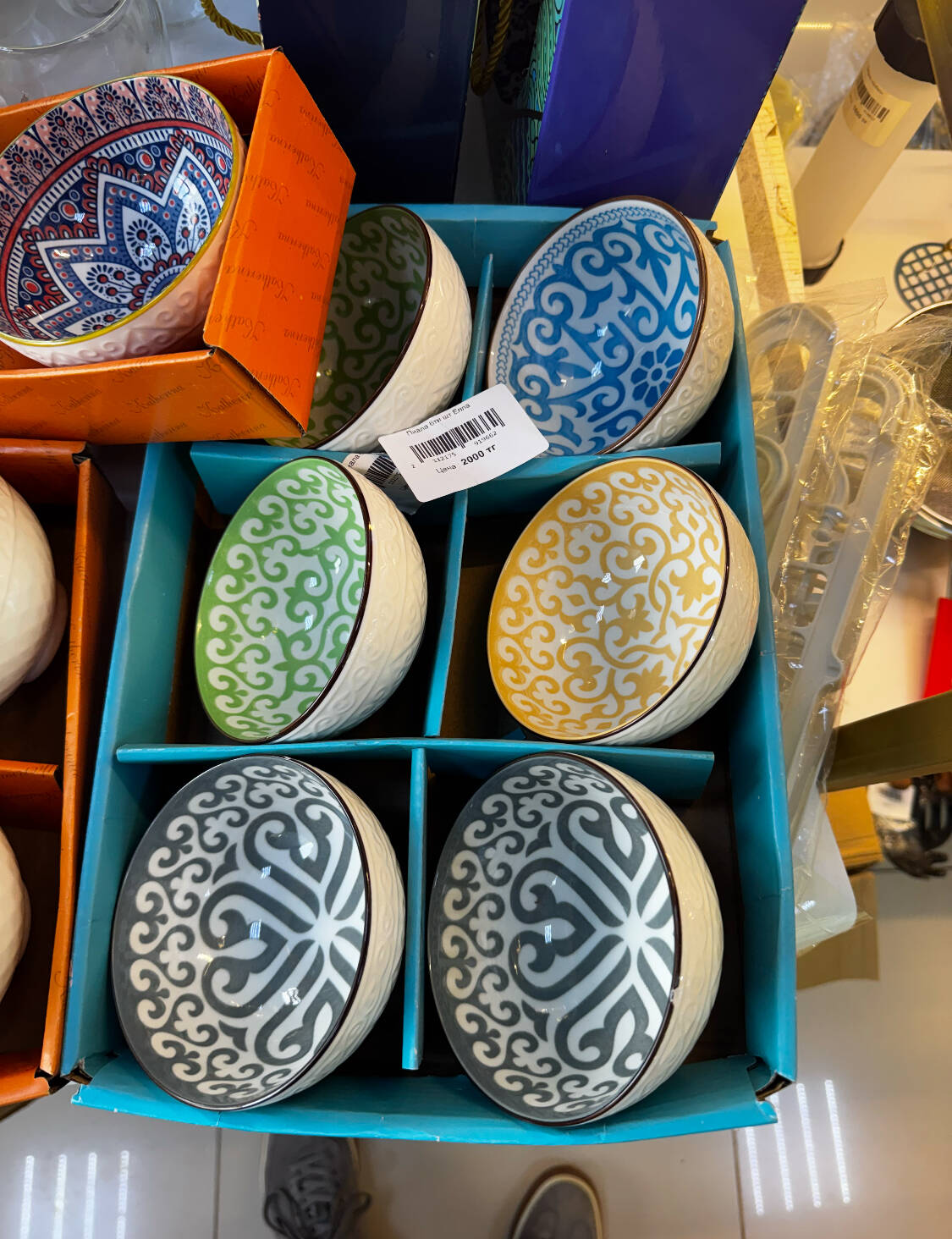 Шуннан соң савыт-саба кибетенә кереп, үземә чәй эчәргә бер савыт алырга булдым. Милли бизәкле касәләр 6 данәләп кенә сатылу сәбәпле, алмаска карар кылдым. Тормыш алып бару өчен кирәк-яракларны алырга дип, бер зур кибеткә кердем, андый кибетләр Казанда да бар. 10000 теңгегә (1500 сум) бик күп әйбер җыеп чыктым. Бәяләр Казан белән чагыштырганда күпкә арзан.