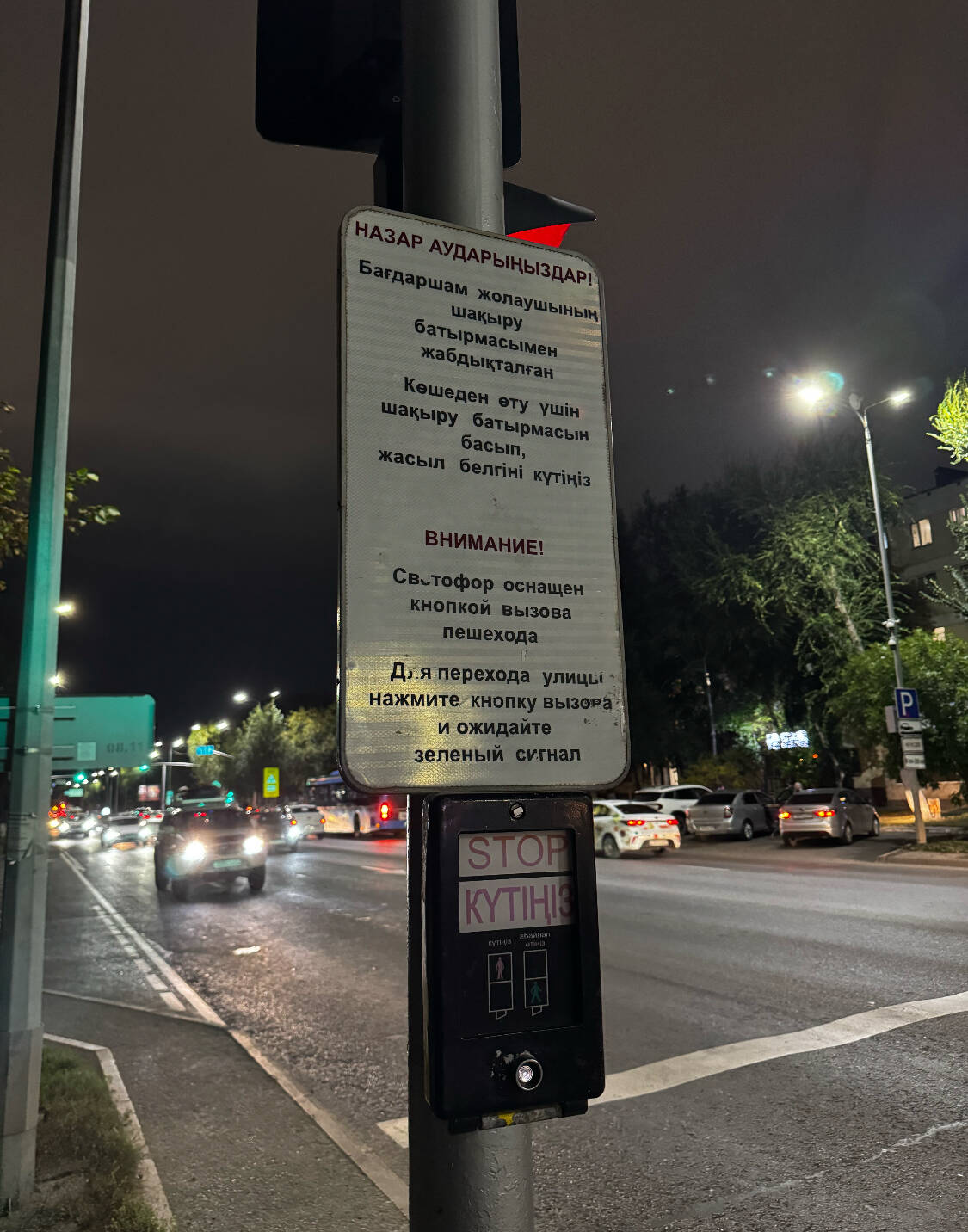 Шулай ук игътибарымны җәлеп иткән күренеш – җәмәгать урыннарының начар яктыртылуы. Казахстан дөньяда уранны җитештерү буенча беренче урында торса да, электростанцияләр аз санлы булу сәбәпле, биредә бу мәсьәлә четерекле булып кала. Хәтта кайбер светофорларда да җәяүлеләр өчен аерым ут янмый, машина йөртүчеләргә яшел ут кабынса, кешеләр дә юл аркылы чыга башлый. Шул ук вакытта, кайбер җирләрдә җәяүлеләр өчен икешәр светофор янып тора.
