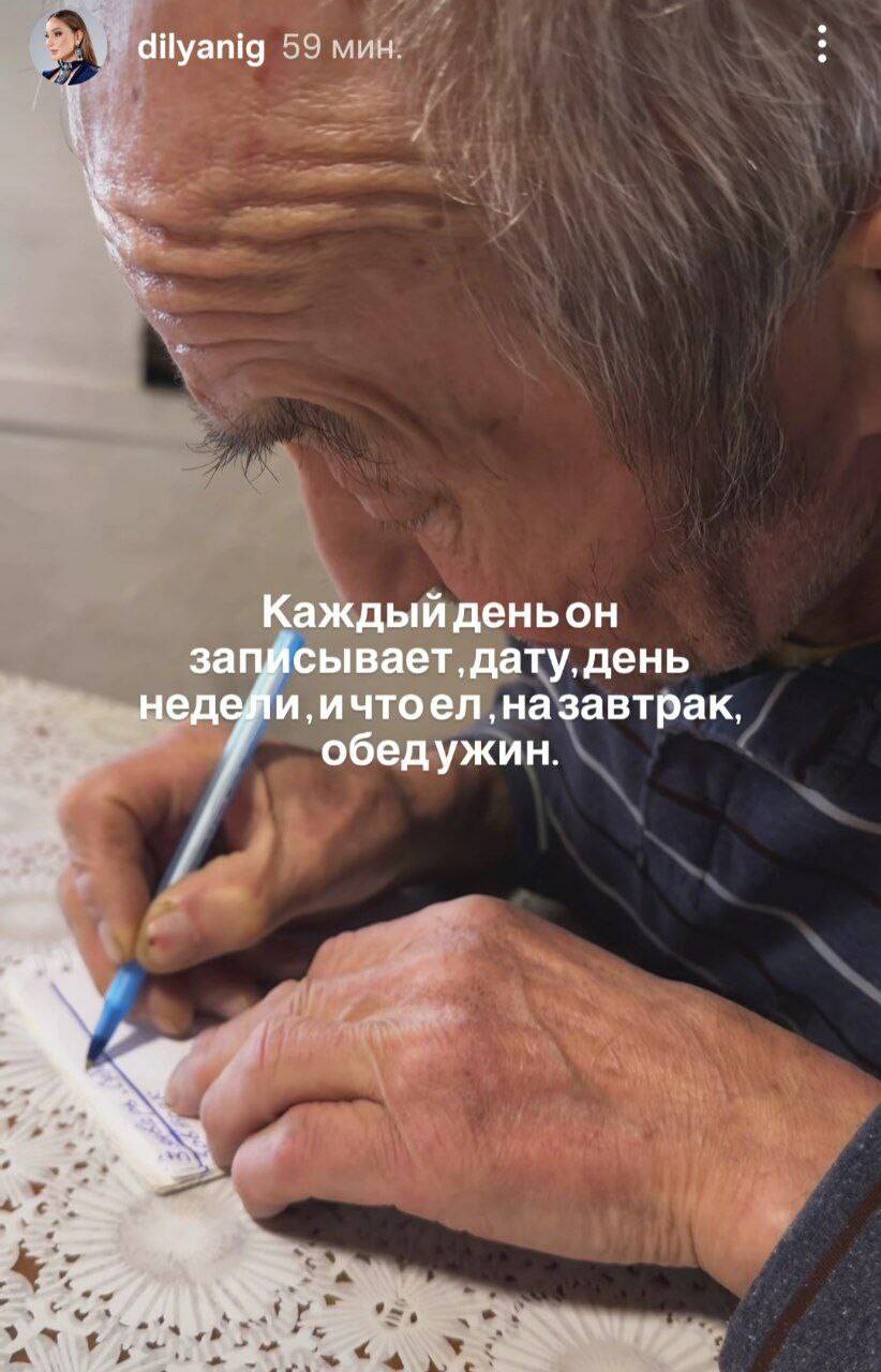 Ул һәр көнне датаны, иртәнге, төшке һәм кичке ашка нәрсә ашаганын язып бара, – дип, якын кешесе белән бәйле борчуы белән уртаклашкан Дилә Нигъмәтуллина.