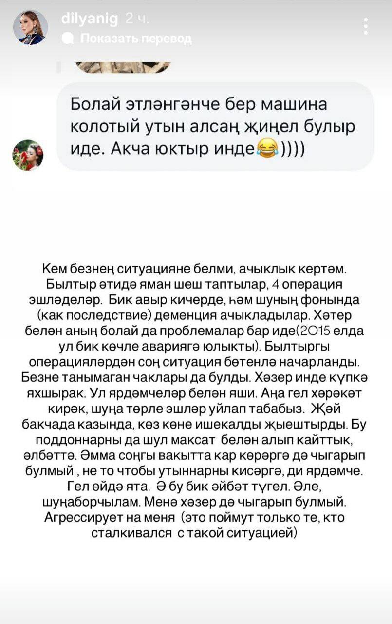 Дилә Нигъмәтуллина бу көннәрдә сторисларында тормыш иптәше белән авылга кайтып, бер машина утын ярганнарын күрсәткән иде. Ләкин җырчыны карап баручылар арасында әлеге гап-гади авыл эшеннән гаеп эзләүчеләр дә табылган. Берәү җырчыга: «Болай этләнгәнче, бер машина утын сатып алсаң, әйбәтрәк булыр иде. Акчаң юктыр инде», – дип язып калдырган.