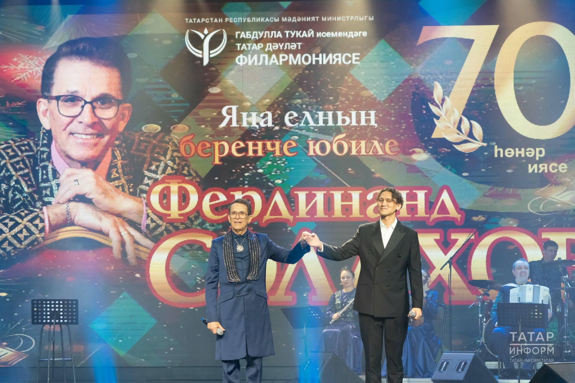 Татар эстрада сәнгатенә ярты гасырдан артык хезмәт итүче Фердинанд Сәлахов дигән феноменны саннар һәм фактлар белән аңлатып карыйк әле: СССР заманында телевидениедә легендар дикторлар гына хөкемлек иткән чорда – җырчылардан беренче алып баручы! «Татарстан – Яңа гасыр» каналындагы «Башваткыч» тапшыруының бүгенге көндә беренче һәм бердәнбер җиңүчесе! «Әйтәсе сүзем бар» китабы һәм 7 CD диск авторы, 37 илдә гастрольдә булып, татар җырын дөньяга танытучы! Әлфия Авзалова һәм Илһам Шакиров белән 30 ел бергә эшләгән бердәнбер җырчы. Аның репертуарында 500дән артык җыр бар! Аларның күбесе – татар классик композиторлары әсәрләре һәм онытылып барган катлаулы халык җырлары, – дип тезеп китте алып баручылар. Искиткеч бит!