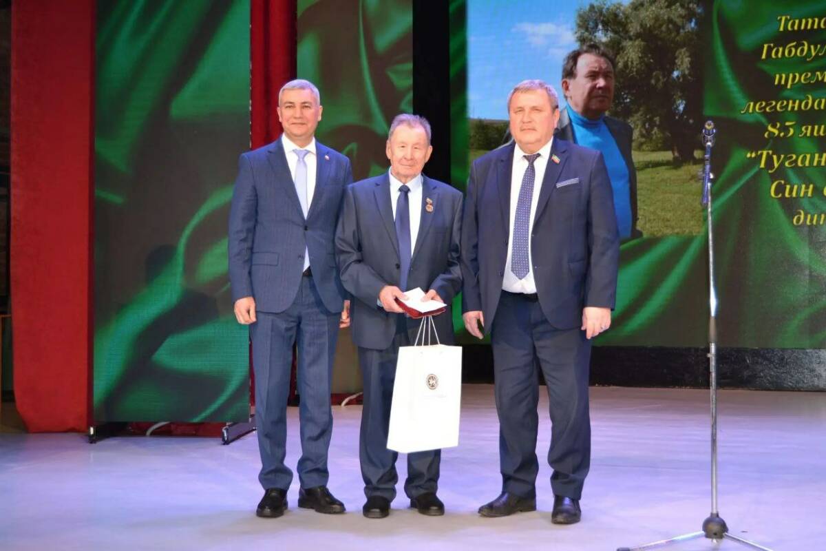 Беренче булып юбилярны Мөслим районы башлыгы, район Советы рәисе Альберт Хуҗин котлады.