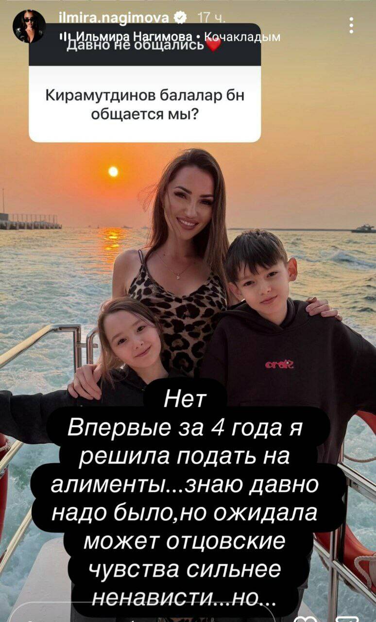 «Дүрт елга беренче тапкыр мин алиментка бирергә булдым. Беләм, инде күптән кирәк иде. Ләкин әти кеше буларак хисләре нәфрәттән көчлерәктер дип уйлаган идем. Әмма...», – дип язды ул бу хакта сторисларында.