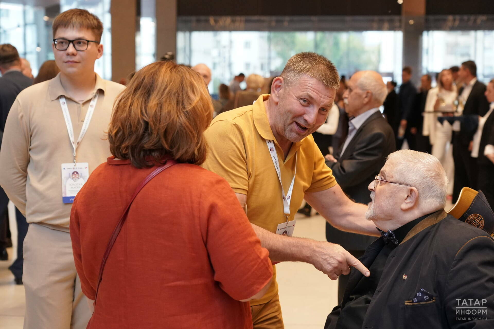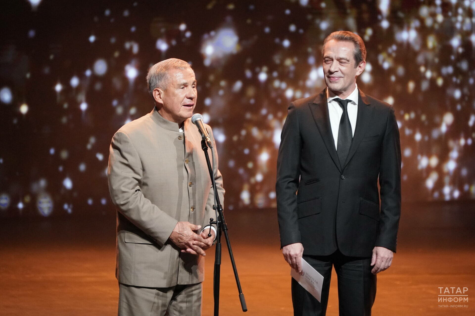 «Хәерле кич, кадерле дуслар! Исәнмесез! Сезне чын күңелдән матур театр бинасында сәламлим һәм зур уңышлар телим!» – дип татарча башлады сүзен Рөстәм Миңнеханов.