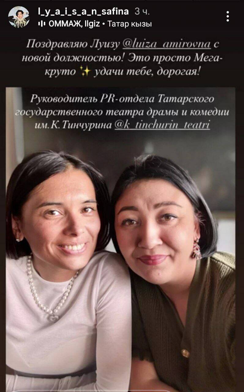 «Луизаны яңа вазифасы белән котлыйм! Бу – мега-шәп! Уңышлар сиңа!» – дип яза ул, бергә төшкән фотоларын куеп.