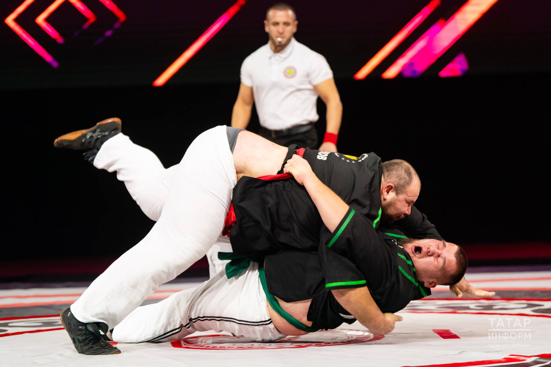 – 133 килограммлы Ринат 178 килограммлы Альбертка каршы, – дип игълан итте көндәшләрне ярышларны шәрехләп баручы Радик Сабиров.