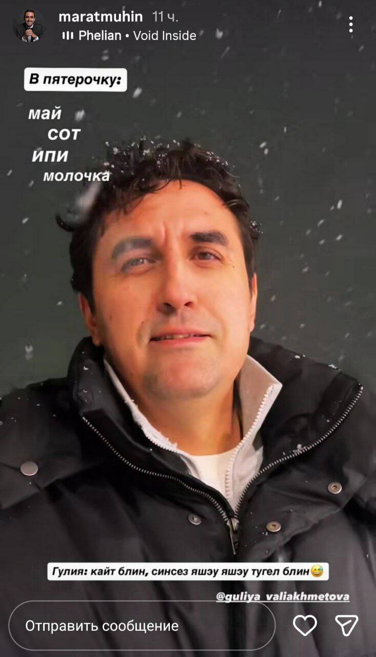 «Кибет… Май, ипи, сөт, молочка… Гөлия, кайт, синсез яшәү – яшәү түгел», – ди Мухин.