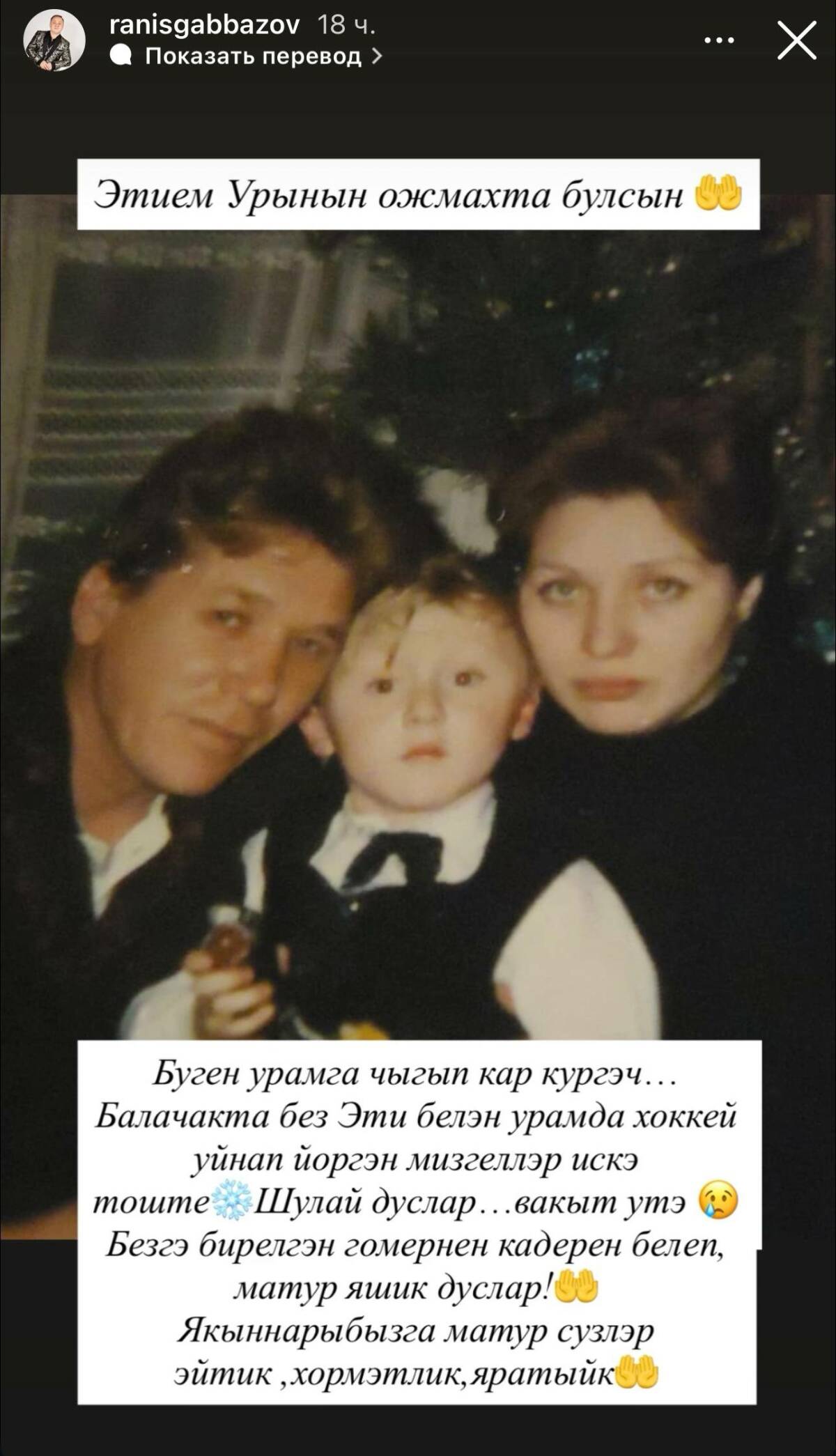 «Бүген урамга чыгып кар күргәч, балачакта әти белән урамда хоккей уйнап йөргән мизгелләр искә төште. Шулай, дуслар, вакыт үтә. Безгә бирелгән гомернең кадерен белеп, матур яшик, дуслар. Якыннарыбызга матур сүзләр әйтик, хөрмәтлик, яратыйк», – ди ул.