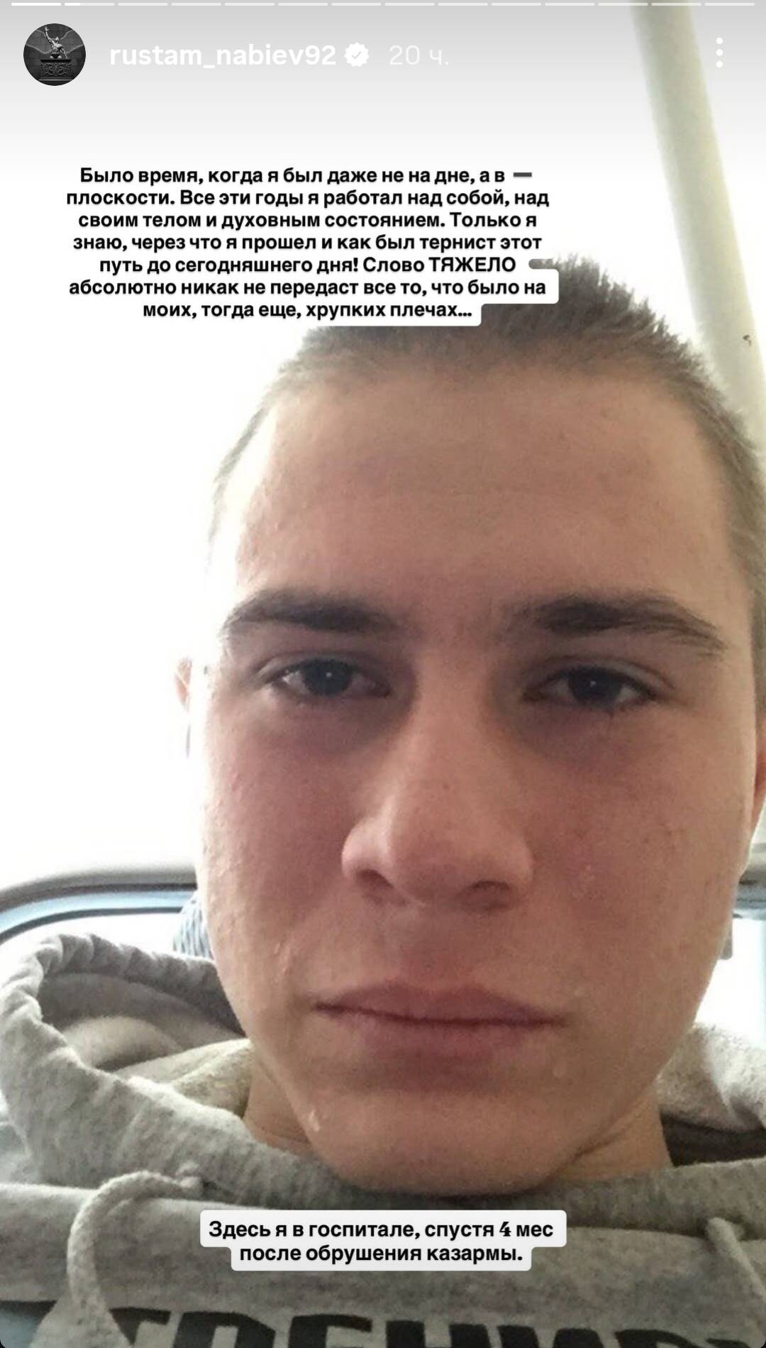 Блогер Рөстәм Нәбиев казарма җимерелеп, госпитальгә эләккәч 4 айдан соң төшкән фотосын күрсәтте.