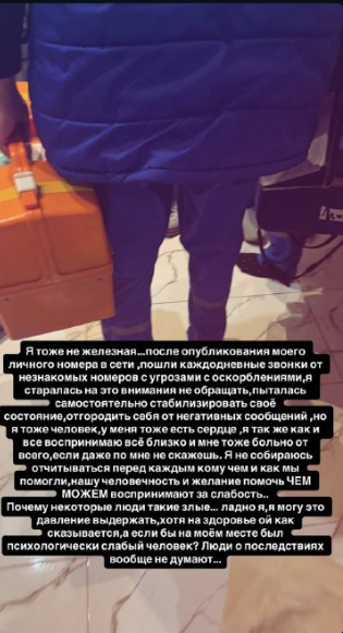 Гөлназ, авариядә зыян күрүчеләргә ярдәм йөзеннән, үзенең шәхси номерын социаль челтәрләргә куйганнан соң, төрле яклап куркытулар һәм янаулар башланганын да сөйләде.