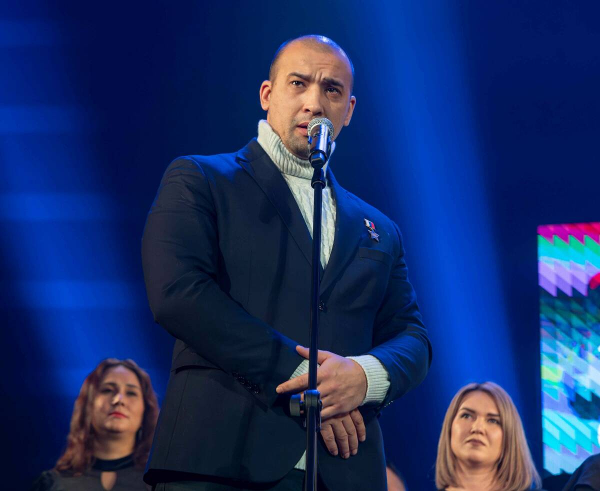 Әтнә театры директоры Ленур Зәйнуллин: «Бүген – зур бәйрәм, сезгә матур теләкләр әйтелде. Театр коллективы да шул теләкләргә кушыла. Сезгә сәламәтлек, иҗади уңышлар телибез».