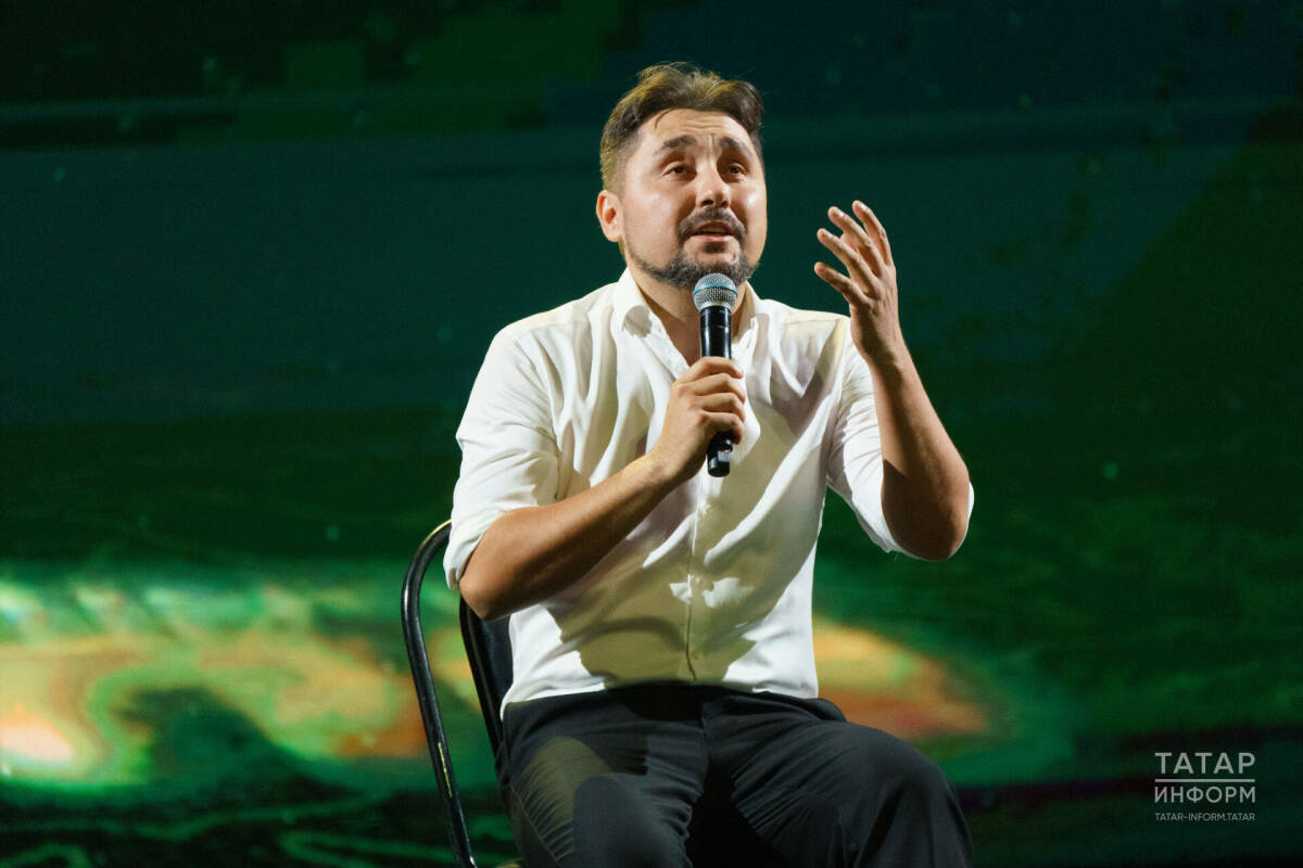 Һәр яклап яудырган сорауларга җавап бирүче, анда-монда чабып йөреп, шул ук вакытта артистларга сценарийны да аңлатып өлгерүче Татарстанның атказанган артисты Илфак Хафизов белән дә тиз генә сөйләшеп алдым. Ул – әлеге концертның режиссеры.