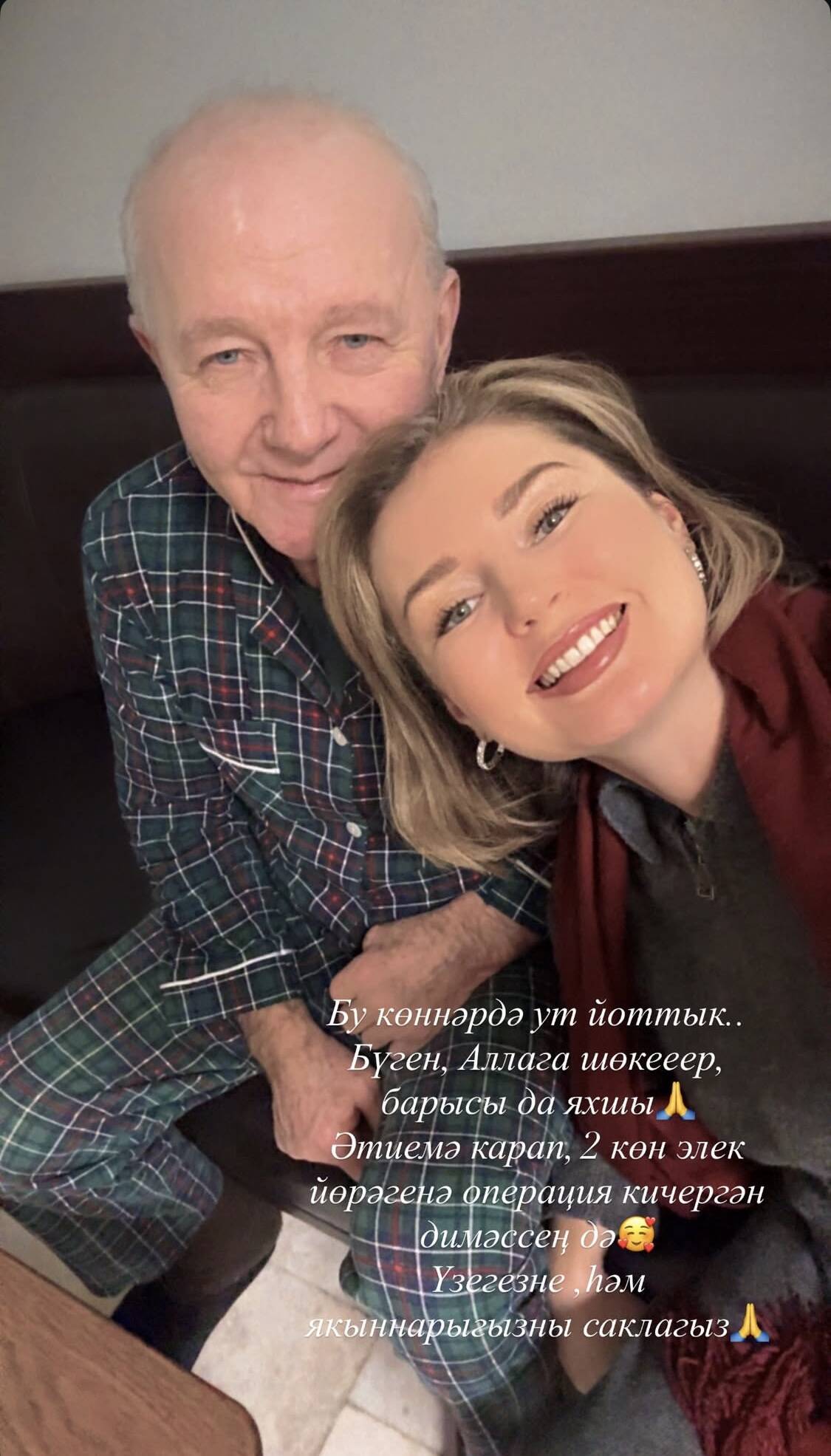 «Бу көннәрдә ут йоттык… Бүген, Аллаһка шөкер, барысы да яхшы. Әтиемә карап, 2 көн элек йөрәгенә операция кичергән, дип әйтмәссең дә. Үзегезне һәм якыннарыгызны саклагыз», – дип яза ул социаль челтәрдәге сәхифәсендә.
