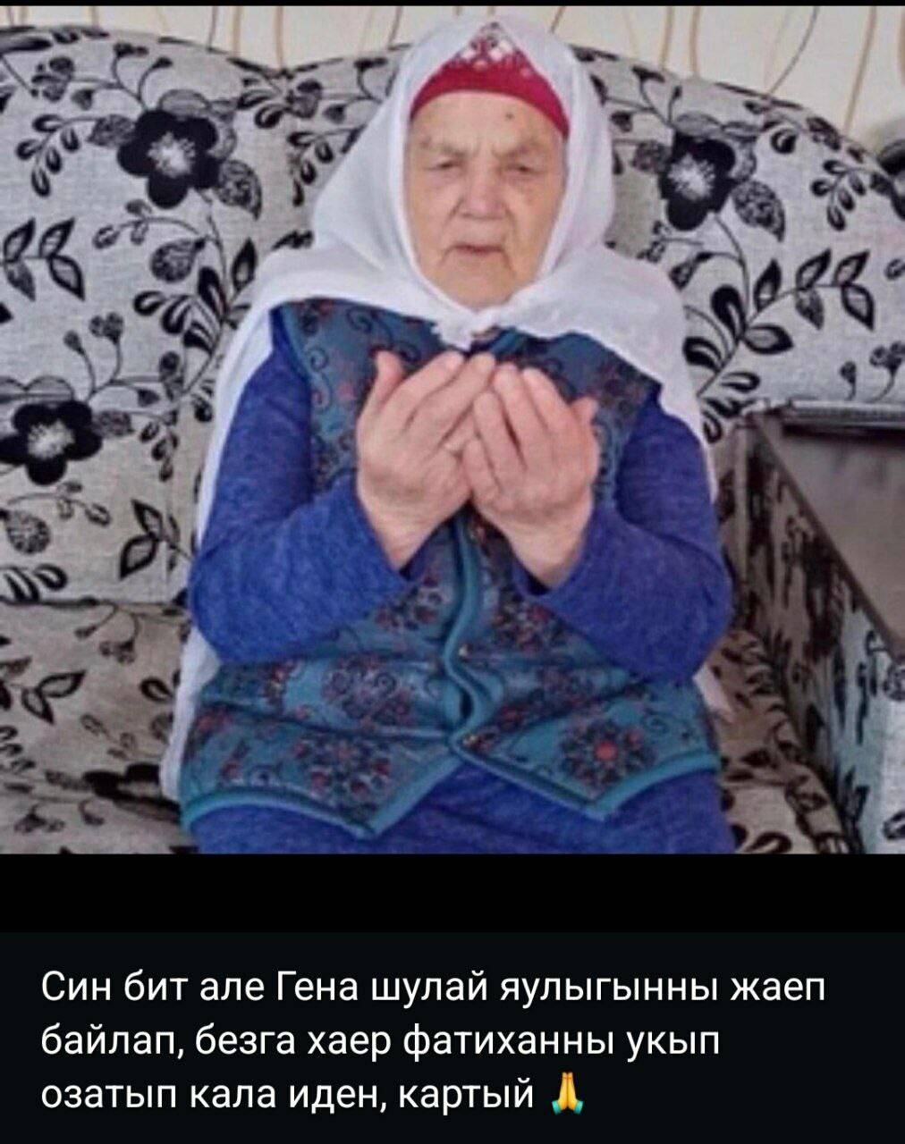 «Кайтып күрми ышанмыйм… Тыныч йокла, картыем. Сине каршы алганнардыр инде кадерлеләрең, алтыныбыз. Оҗмах түрләрендә бул.