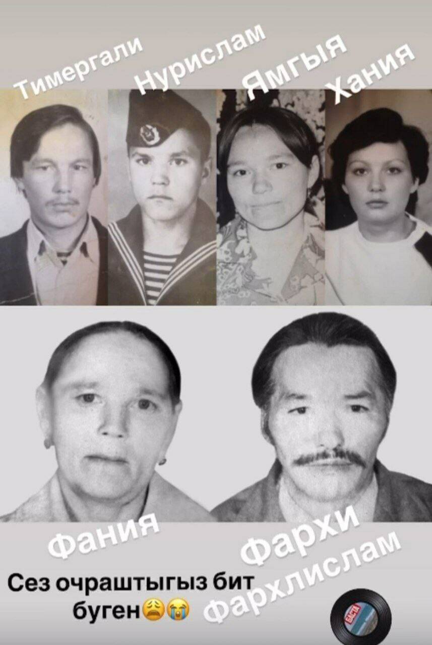 Тимергали, Нурислам абыйларым, Җәмгыя апа, Хәния апа, бабам Фәрхелислам, әбием Фәния... Сез очраштыгыз бит бүген.