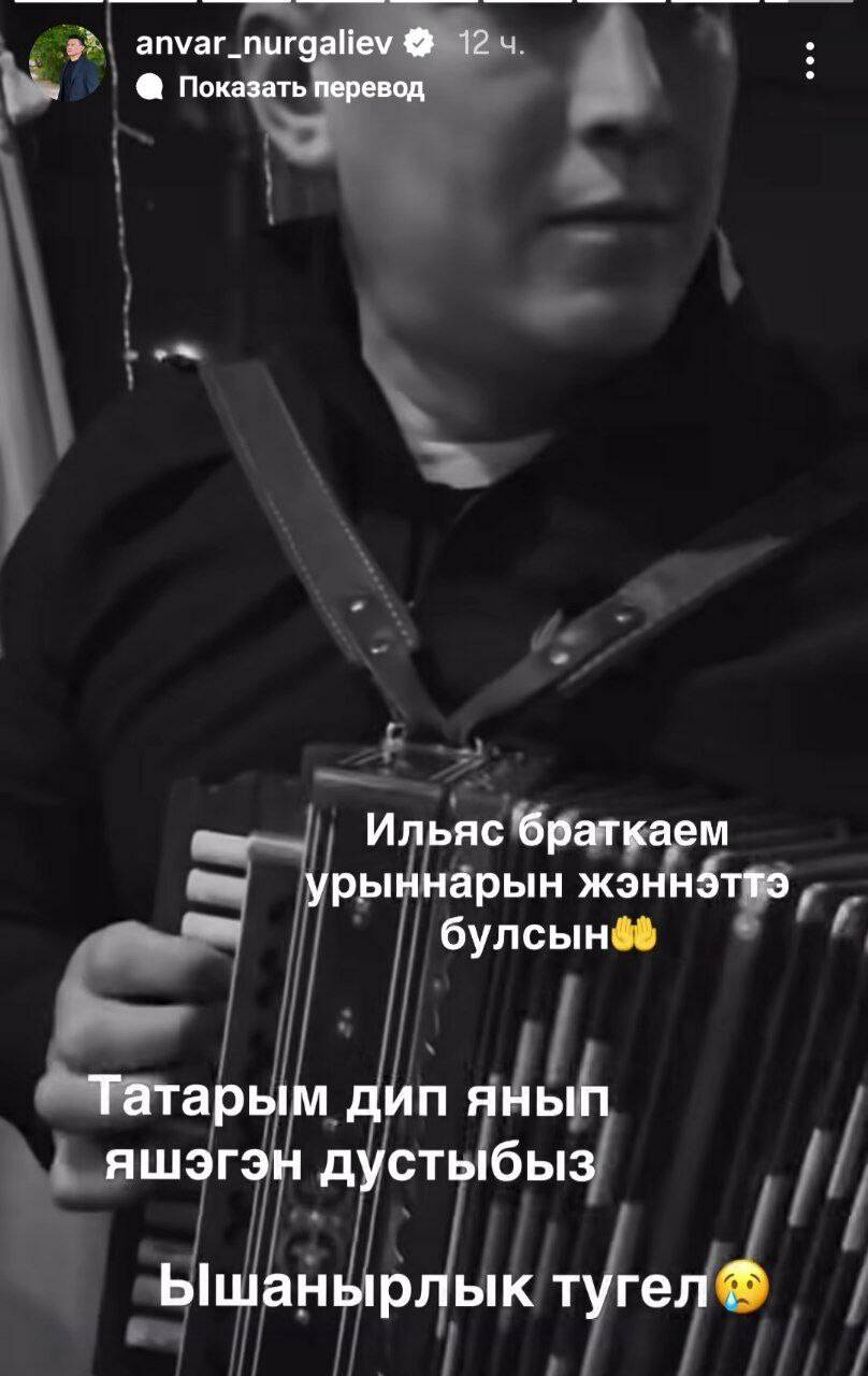 «Дуслар, Төмәннән кайтып кына җиткән идем, тагын юлга чыгып китәргә туры килде. Пермь ягына Бардага юл тоттык. Безнең якын дустыбыз Ильяс үзенең вертолеты белән фаҗигале төстә һәлак булды. Айрат белән шунда кузгалдык. Сабырлык телибез туганнарына, берничек тә юата торган сүзләр табып булмый», – ди җырчы.