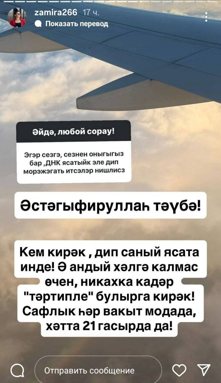 «Кем кирәк дип саный – ясата инде. Ә андый хәлгә калмас өчен, никахка кадәр «тәртипле» булырга кирәк. Сафлык һәрвакыт модада, хәтта XXI гасырда да», – дип яза Зәмирә.